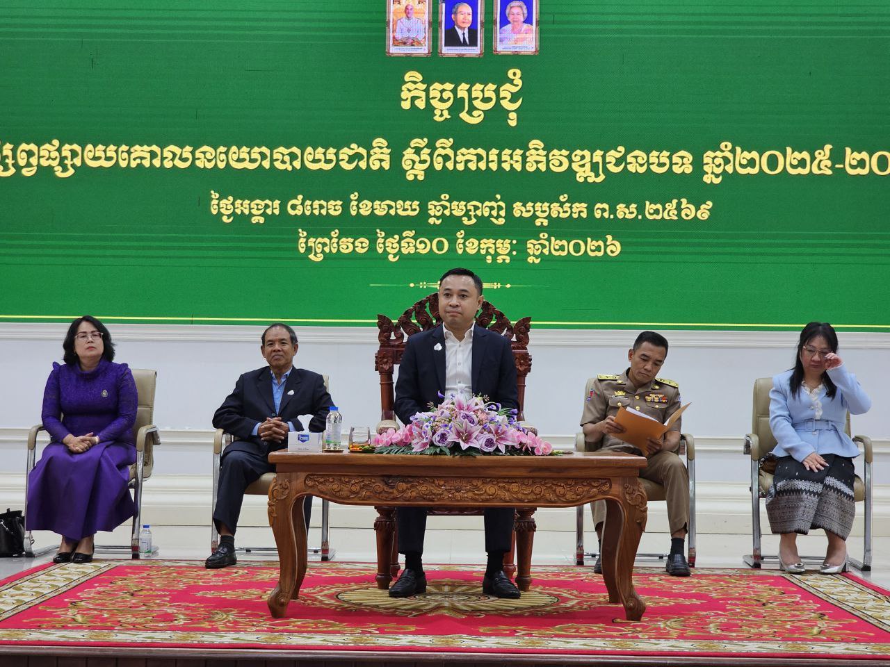 (ព្រៃវែង)៖ ថ្ងៃទី១០ ខែកុម្ភៈ ឆ្នាំ២០២៦ ក្រសួងអភិវឌ្ឍន៍ជនបទបានរៀបចំកិច្ចប្រជុំផ្សព្វផ្សាយ «គោលនយោបាយជាតិស្តីពីការអភិវឌ្ឍជនបទ ឆ្នាំ២០២៥-២០៣៥» ក្រោមអធិបតីភាព ឯកឧត្តម ជួប រតនា រដ្ឋលេខាធិការតំណាងដ៏ខ្ពង់ខ្ពស់ ឯកឧត្តម ឆាយ ឫទ្ធិសែន រដ្ឋមន្ត្រីក្រសួងអភិវឌ្ឍន៍ជនបទ។