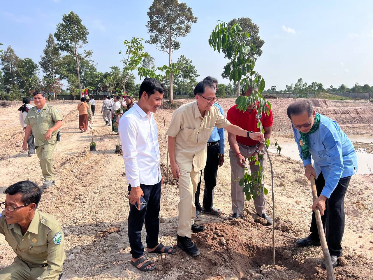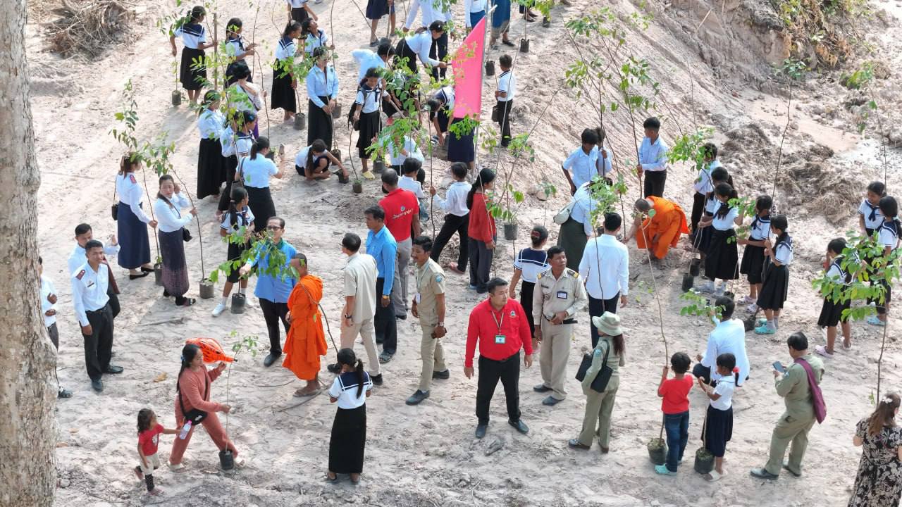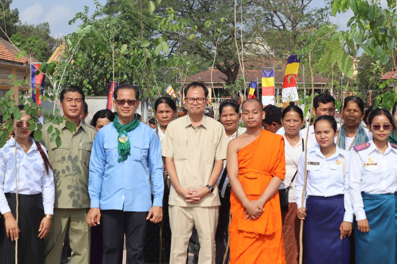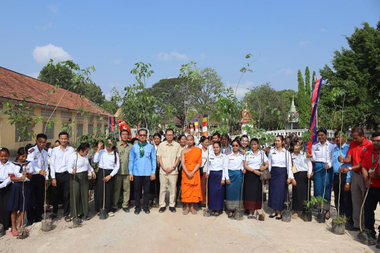 (កំពង់ស្ពឺ)៖ ឯកឧត្ដមបណ្ឌិត សាម អីន រដ្ឋលេខាធិការ តំណាងដ៏ខ្ពង់ខ្ពស់ឯកឧត្ដមបណ្ឌិត អ៊ាង សុផល្លែត រដ្ឋមន្ត្រីក្រសួងបរិស្ថាន អមដំណេីរដោយ ឯកឧត្ដម ង៉ូវ បូរីណា រដ្ឋលេខាធិការ ក្រសួងបរិស្ថានបានអញ្ជើញជាអធិបតីក្នុងយុទ្ធនាការ “ពន្លកបៃតង” នាព្រឹកថ្ងៃទី២២ ខែមីនា ឆ្នាំ២០២៦ ស្ថិតនៅក្នុងបរិវេណវត្តអង្គក្ដី ភូមិព្រៃស្មាច់ ឃុំព្រៃវិហារ ស្រុកគងពិសី ខេត្តកំពង់ស្ពឺ។