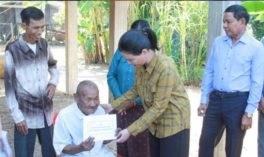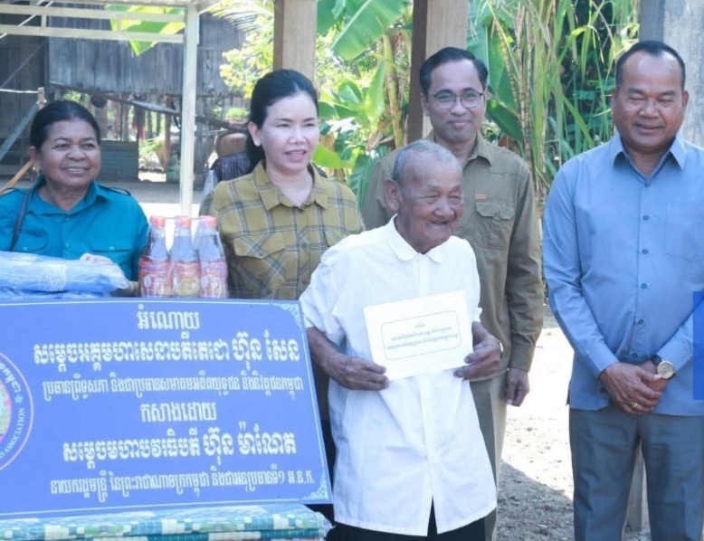 (ខេត្តប៉ៃលិន)៖ លោកជំទាវបណ្ឌិត បាន ស្រីមុំ អភិបាលនៃគណៈអភិបាលខេត្ត និងជាប្រធានសមាគមអតីតយុទ្ធជន និងនិវត្តជនកម្ពុជាខេត្តប៉ៃលិនអមដំណើរដោយក្រុមការងារ កាលពីថ្ងៃទី២៩ ខែមីនា ឆ្នាំ២០២៦ បានអញ្ជើញប្រគល់ផ្ទះ១ខ្នងដែលជាអំណោយដ៏ថ្លៃថ្លារបស់សម្តេចអគ្គមហាសេនាបតីតេជោ ហ៊ុន សែន ប្រធានព្រឹទ្ធសភា និងជាប្រធានសមាគមអតីតយុទ្ធជន និងនិវត្តជនកម្ពុជា និងកសាងដោយសម្ដេចមហាបវរបតី ហ៊ុន ម៉ាណែត នាយករដ្ឋមន្ត្រី និងជាអនុប្រធានទី១ សមាគមអតីតយុទ្ធជន និងនិវត្តជនកម្ពុជាជូនដល់អតីតយុទ្ធជនម្នាក់ឈ្មោះ ប៉ាង សន ភេទប្រុស អត្តលេខ RA07001062 រស់នៅភូមិអូរច្រាលើ សង្កាត់ទួលល្វា ក្រុងប៉ៃលិន ខេត្តប៉ៃលិន ដើម្បីសម្រាលដល់ទុក្ខលំបាក និងជីវភាពរស់នៅប្រចាំថ្ងៃ។
