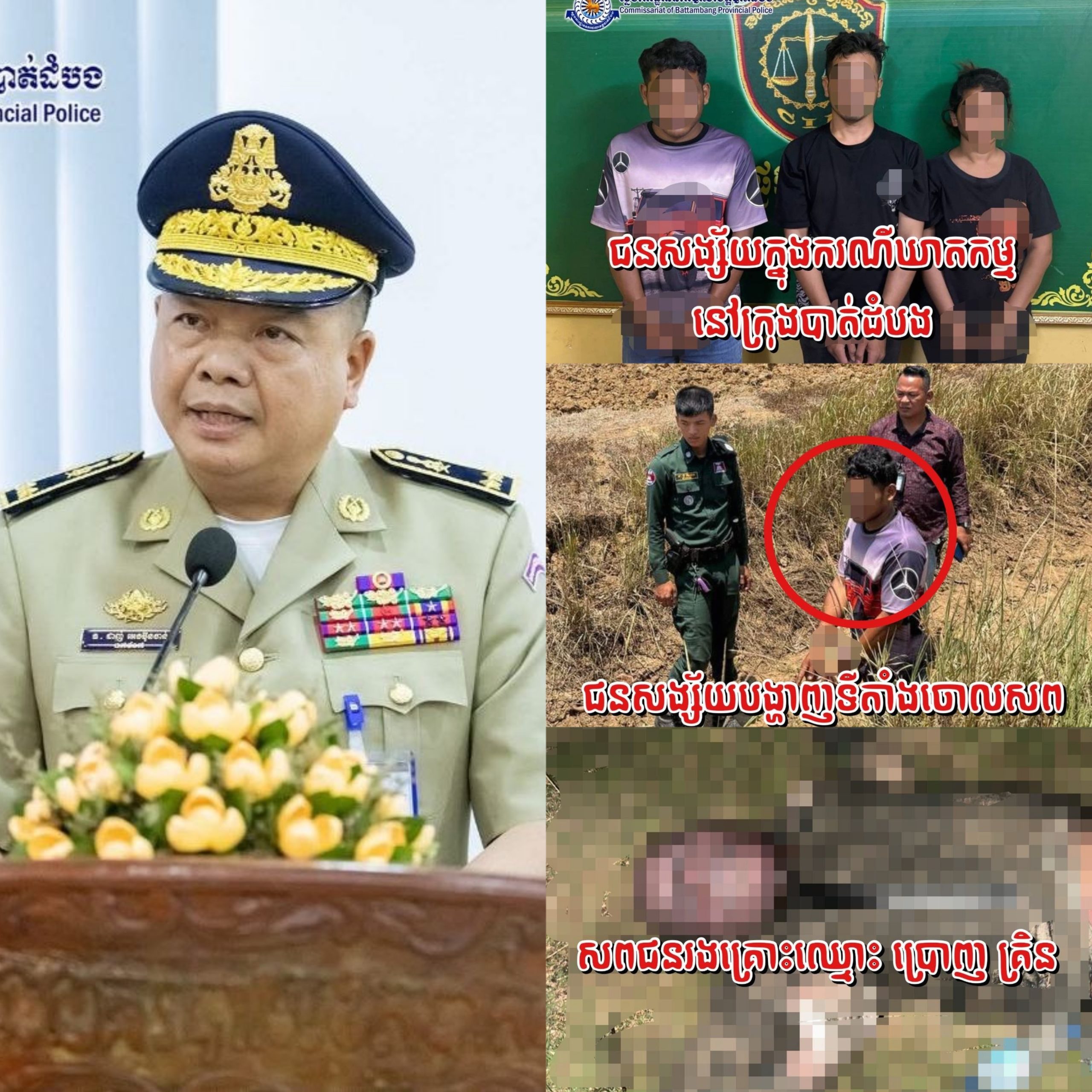 (បាត់ដំបង)៖ ករណីប្រទះឃើញសពជនរងគ្រោះកាលពីថ្ងៃទី២៥ ខែមីនា ឆ្នាំ២០២៦កន្លងទៅ ពេលនេះសមត្ថកិច្ចចាប់ក្រុមជនសង្ស័យបានហើយ។ ដោយស្របតាមអនុសាសន៍ដ៏ខ្ពង់ខ្ពស់របស់ឯកឧត្តម នាយឧត្តមសេនីយ៍ ស ថេត អគ្គស្នងការនគរបាលជាតិ និងដោយបានការសម្របសម្រួលលើនីតិវិធីពីឯកឧត្តមមាស ចន្ទពិសិដ្ឋ ព្រះរាជអាជ្ញានៃអយ្យការអមសាលាដំបូងខេត្តបាត់ដំបងក្រោមបញ្ជាដឹកនាំរបស់លោកឧត្តមសេនីយ៍ទោ ដាញ់ អេងប៊ុនចាន់ ស្នងការនៃស្នងការដ្ឋាននគរបាលខេត្តបាត់ដំបង លោកវរសេនីយ៍ឯក ឈឿង គឹមសុង ស្នងការរងផែនការងារនគរបាលព្រហ្មទណ្ឌ ដឹកនាំកម្លាំងក្នុងផែនរួមសហការជាមួយសមត្ថកិច្ចនគរបាលក្រុងបាត់ដំបងដែលមានលោកវរសេនីយ៍ឯក ពេជ្រ សារ៉ែន ជាអធិការ និងនគរបាលស្រុកសង្កែដែលមានលោកវរសេនីយ៍ទោ យុត តុងហូ ជាអធិការធ្វើការស្រាវជ្រាវរហូតឃាត់ខ្លួនមនុស្សចំនួន ០៣នាក់ ក្នុងករណីឃាតកម្មសម្លាប់ជនរងគ្រោះឈ្មោះប្រោញ គ្រិន ភេទប្រុស អាយុ ៦៥ឆ្នាំជាអ្នករស់ នៅភូមិដូនត្រឹក ឃុំតាសាញ ស្រុកសំឡូត ខេត្តបាត់ដំបង ដែលត្រូវបានប្រទះឃើញសពកាលពីថ្ងៃទី២៤ ខែ មីនា ឆ្នាំ២០២៦ នៅក្នុងប្រឡាយក្រុមទី៣៦ ភូមិចំការសំរោង ២ សង្កាត់ចំការសំរោង ក្រុងបាត់ដំបង។