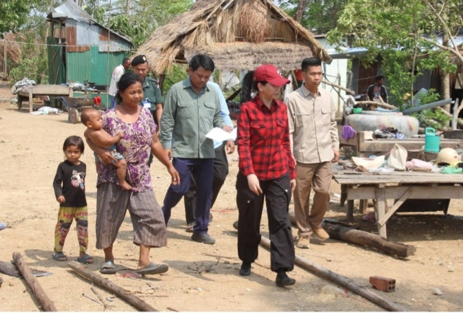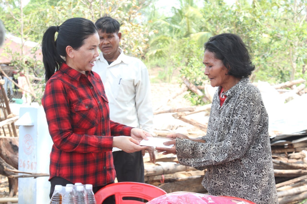 លោកជំទាវបណ្ឌិត បាន ស្រីមុំ បានមានប្រសាសន៍នាំមកនូវការផ្ដាំផ្ញើសួរសុខទុក្ខពីសំណាក់សម្ដេចកិត្តិព្រឹទ្ធបណ្ឌិត ប៊ុន រ៉ានី ហ៊ុនសែន ប្រធានកាកបាទក្រហមកម្ពុជាដែលសម្តេចតែងតែយកចិត្តទុកដាក់គិតគូរចំពោះសុខទុក្ខប្រជាពលរដ្ឋគ្រប់រូប មិនប្រកាន់វណ្ណៈ ពណ៌សម្បុរ ជំនឿសាសនា ឬនិន្នាការនយោបាយណាមួយឡើយ ព្រមទាំងបានសម្ដែងនូវការសោកស្ដាយចំពោះការខូចខាតបាត់បង់ផ្ទះសំបែង ទ្រព្យសម្បត្តិដោយគ្រោះមហន្តរាយ និងលើកទឹកចិត្តដល់ប្រជាពលរដ្ឋរងគ្រោះ សូមកុំឱ្យមានការអស់សង្ឃឹមត្រូវខិតខំប្រឹងប្រែងប្រកបមុខរបររកស៊ីដើម្បីអភិវឌ្ឍន៍សេដ្ឋកិច្ចគ្រួសារទៅថ្ងៃខាងមុខបន្តទៀត។