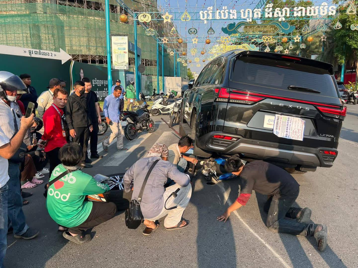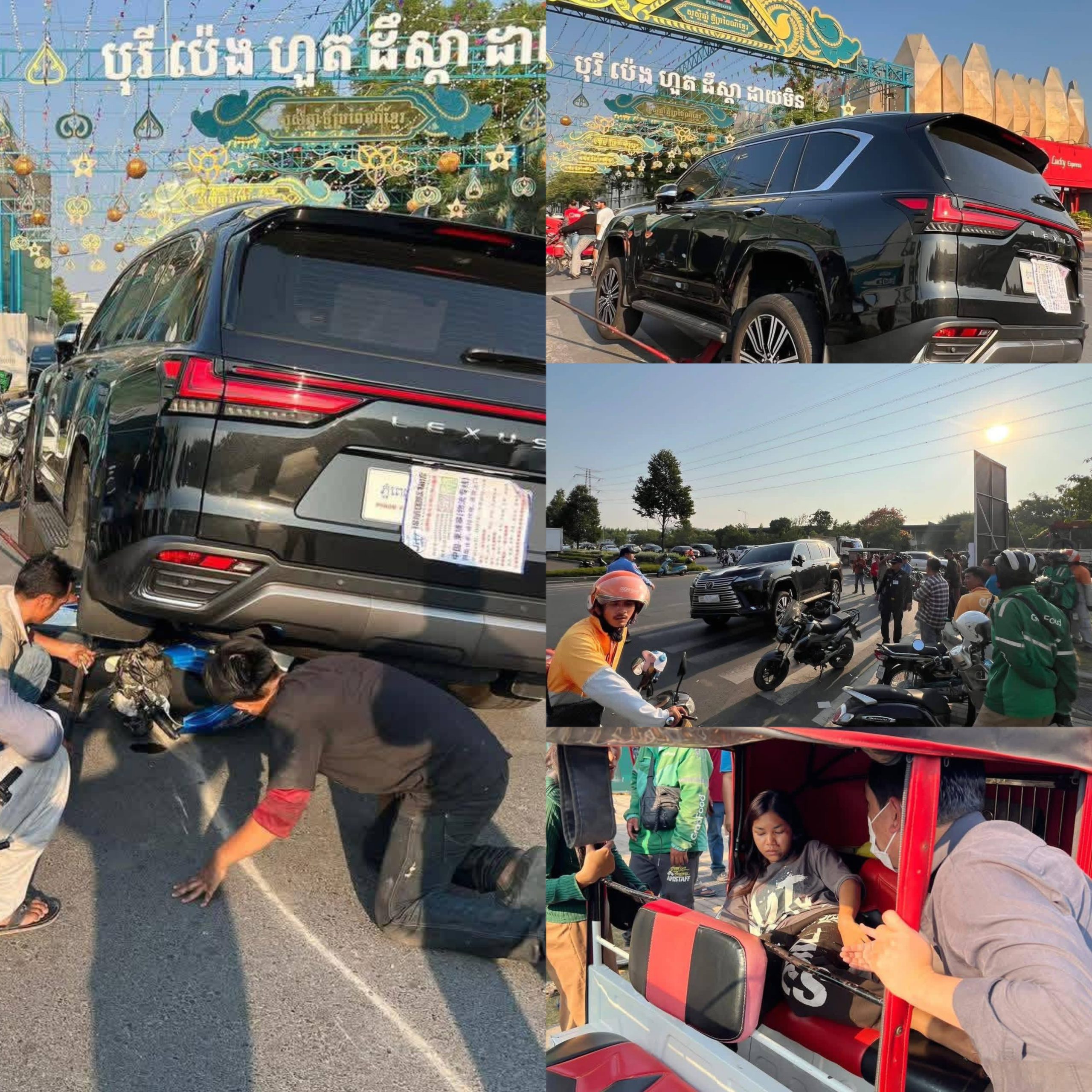 (ព័ត៌មានបឋម)៖ ករណីគ្រោះថ្នាក់ចរាចរណ៍ បុរសជនជាតិចិនម្នាក់បើករថយន្ត Lexus LX700h ដែលមានស្លាកលេខ ភ្នំពេញ2CK-1128 បានបុកជាមួយនឹងម៉ូតូ HONDA BEAT ដែលមានស្លាកលេខ កណ្ដាល1AV-8289 បណ្ដាលឱ្យម៉ូតូជាប់នៅក្រោមរថយន្តចំណែកម្ចាស់ម៉ូតូរងរបួសស្រាល។